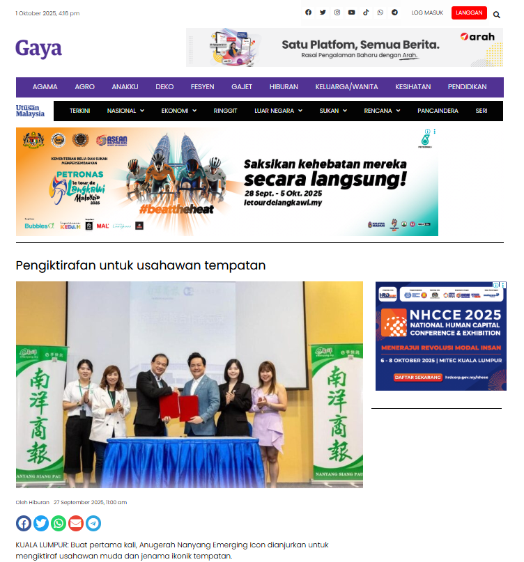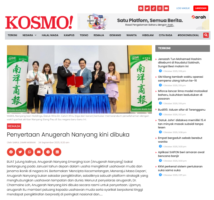 Kosmo reports the official launch and open registration for the inaugural Anugerah Nanyang Emerging Icon — a new platform to recognise young entrepreneurs and iconic Malaysian brands.